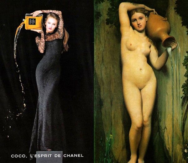 장 오귀스트 도미니크 앵그르의 '샘' (La Source)을 패러디한 샤넬의 광고.
