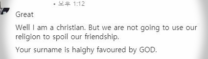 기독교 신자로서 종교적인 요소가 우리 사이를 갈라놓길 바라지 않은데, 나의 '성'은 하나님께서 축복해주셨단다.