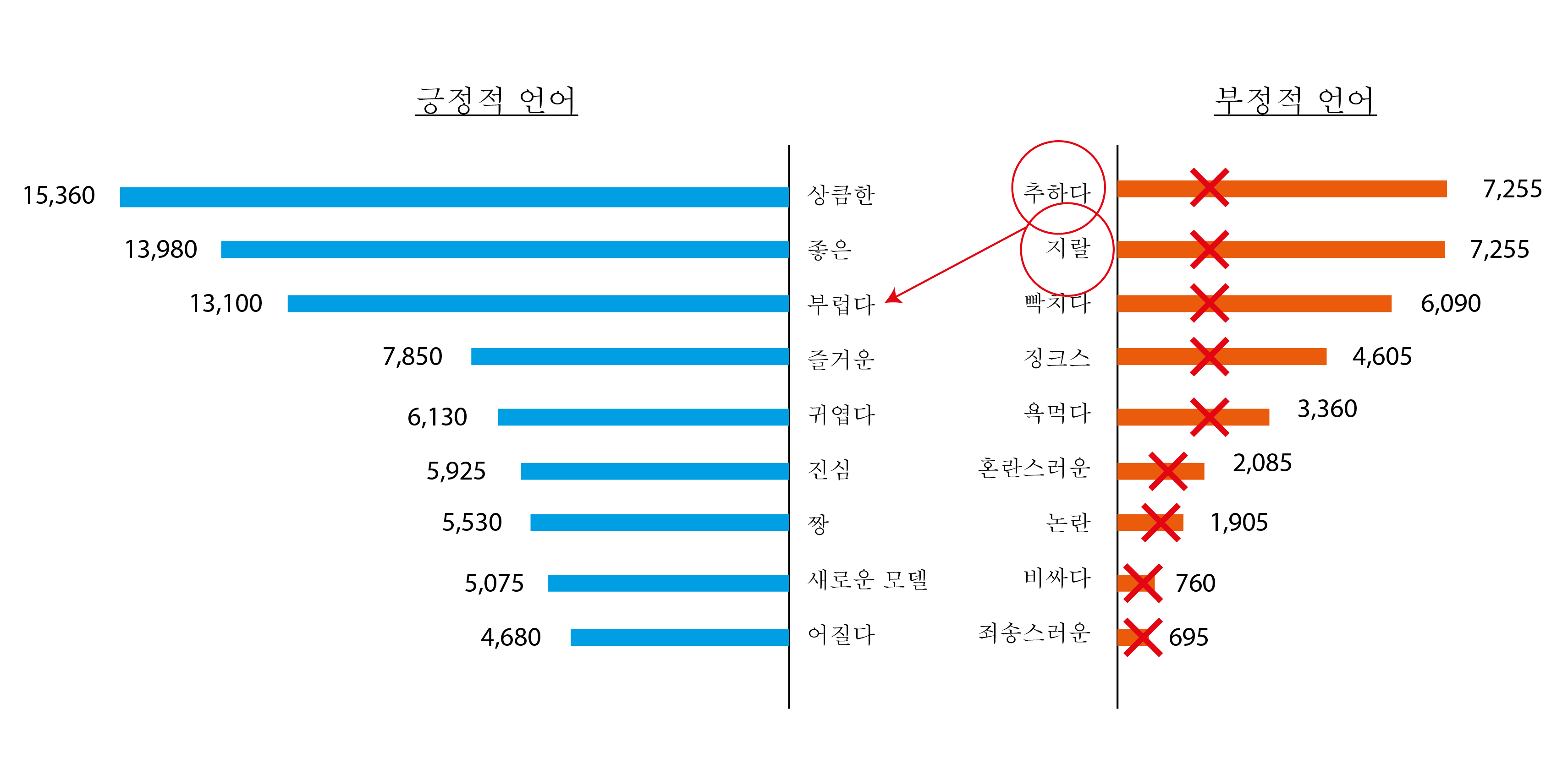 연관어와 긍정어, 부정어를 파악하는 것은, 전소미 모델에 대한 '자유연상' 이미지를 파악하기 위해서다. 글로 표현한 것을 통해 간접적으로 파악하려는 것이고, 취합하는 로봇이 제대로 임무 수행을 못하는 것이 문제지만, 마케팅 비용을 사용하여 모델 이미지 조사를 하기 전에 온라인을 통해 이와 같이 대략적인 이미지 조사를 실행할 수 있다.