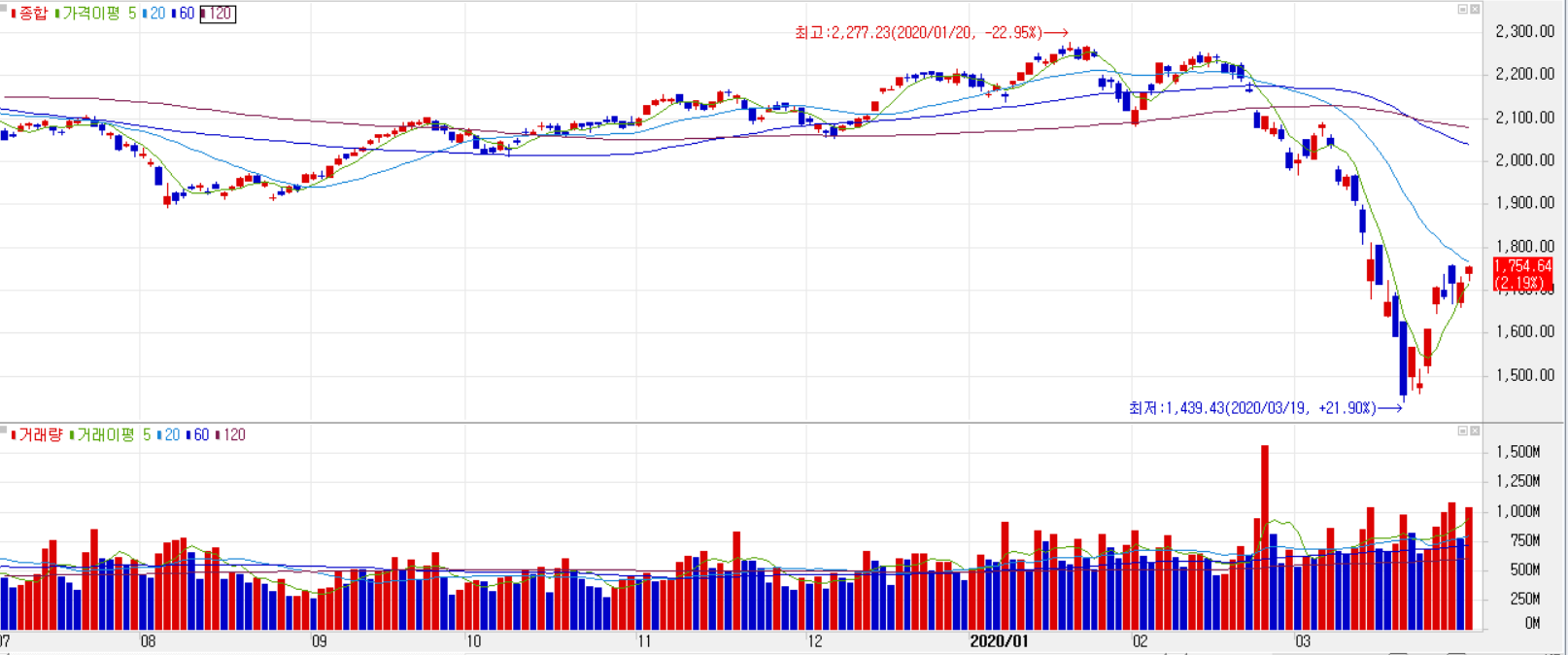 주가 하락으로 파생운용 실적, IB실적이 위축될 가능성이 있으나, 거래대금 증가시에는 증권사 중개 수수료 수익이 증가할 수는 있다. 증권시장 하락장에 대응하기 위하여 금융권이 공동 출자한 증권시장안정펀드가 10조 7천억 원 규모로 조성되어 4월 초에 투자 개시할 예정이다.