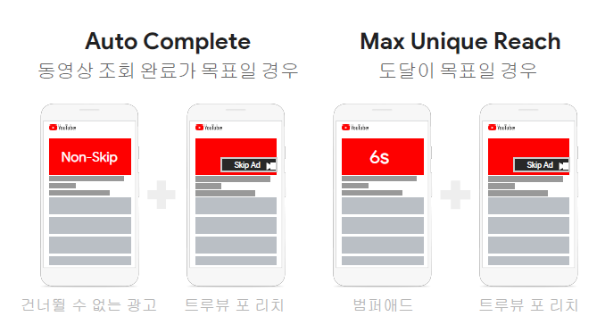 * 높은 도달 확장을 위해 트루뷰 인스트림 혹은 트루뷰 포 리치 포맷과 함께 사용할 것을 권장한다.