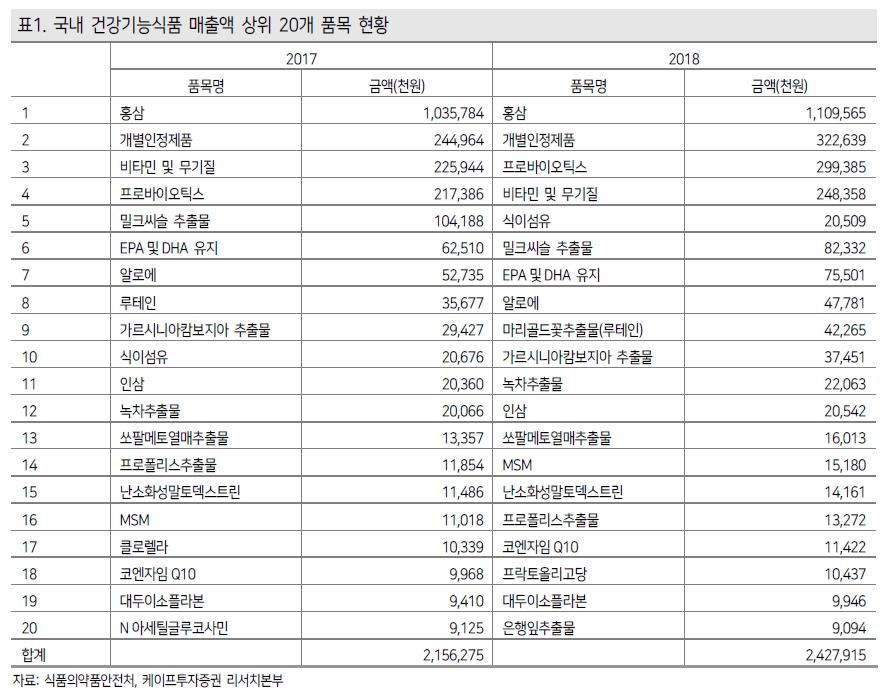 주식투자를 위해 증권사에서 산업 분석 보고서를 낸 것이지만, 건강기능식품 시장에 대해 파악하고자 하는 제조사나 판매사 입장에서도 매우 큰 도움을 받을 수 있는 내용이기에 여기에 요약해서 소개해보고자 한다.