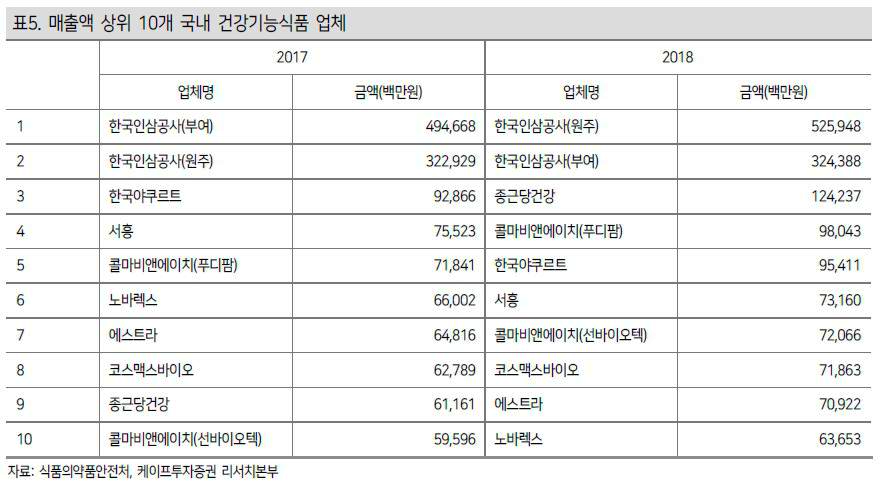 - 국내 건기식 시장은 2020년 약 5조원으로 전년대비 9% 성장 전망