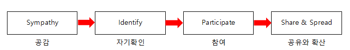SNS가 주류인 시대의 소비자 정보처리 행동은, "공감 → 자기확인 →참여 → 공유와 확산"으로 나타난다고 제시하였다.
