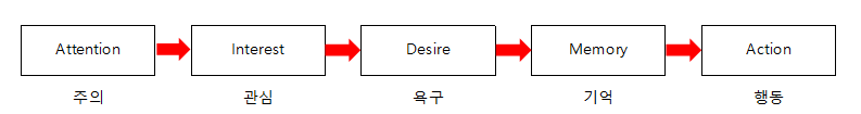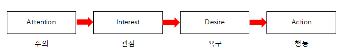 "인지 Awarebess → 이해와 이미지 comprehension & image → 태도 attitude → 행동 Action"의 단계를 거친다.