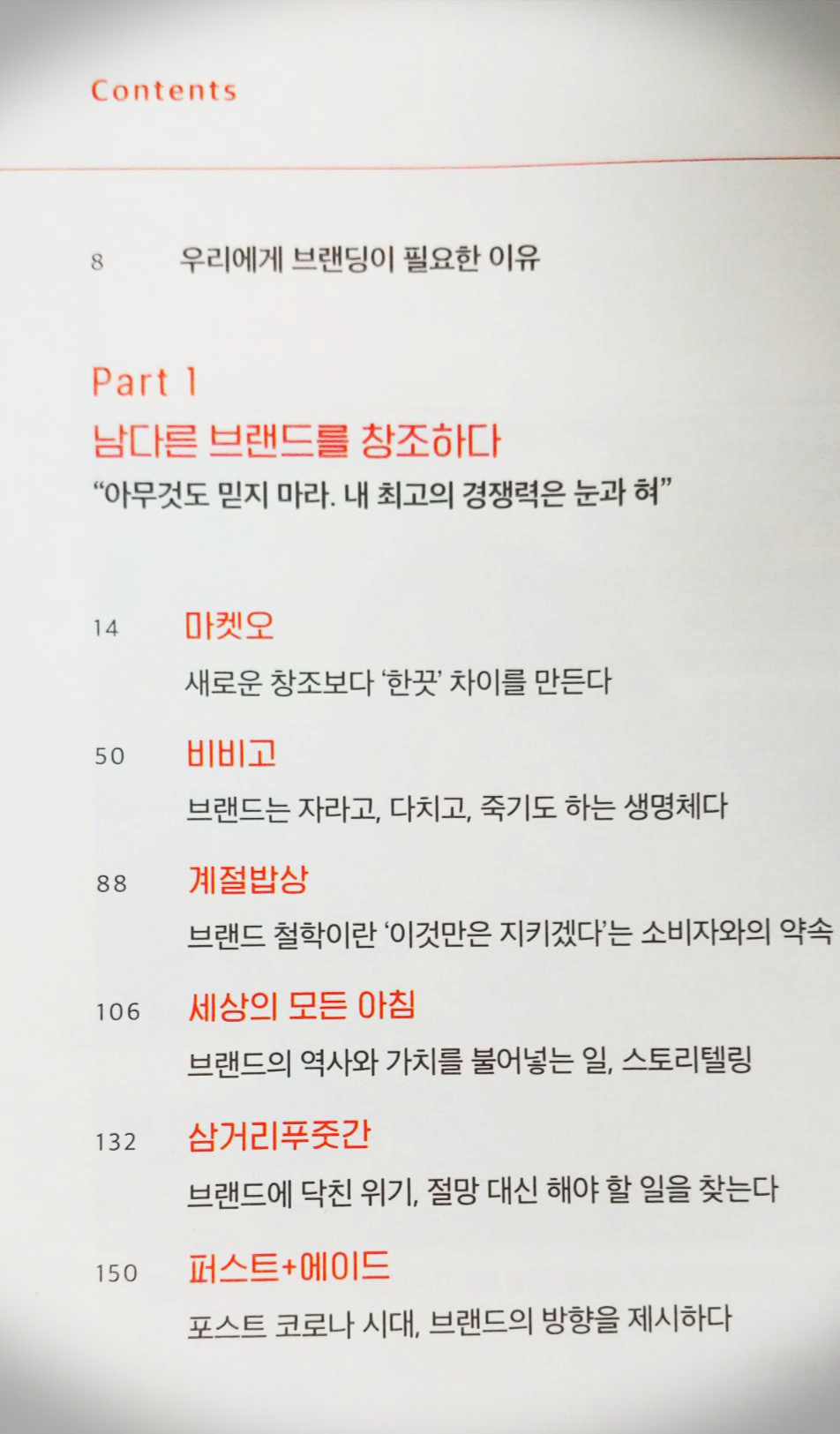 브랜딩에서 중요한 부분이라고 할 수 있는 차별화와 집요한 고집에 대해서 살펴볼 수 있는 챕터라고 본다.